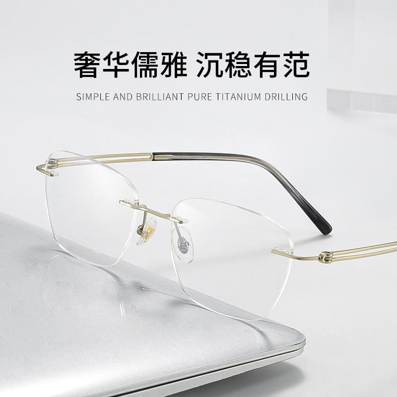Gafas de Hombre Mirror One Factory, Montura de Titanio Puro sin Aro, Modelo 6077, Ultraligeras, Cuadradas, Ópticas
