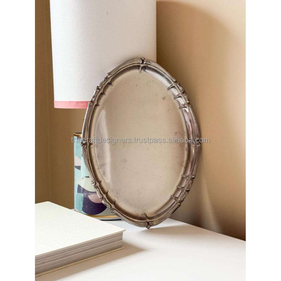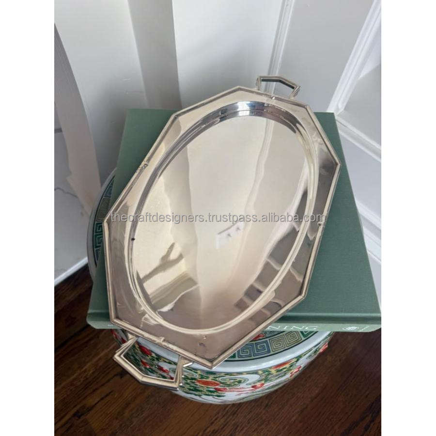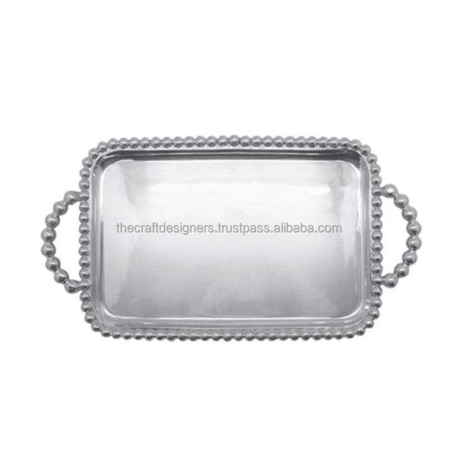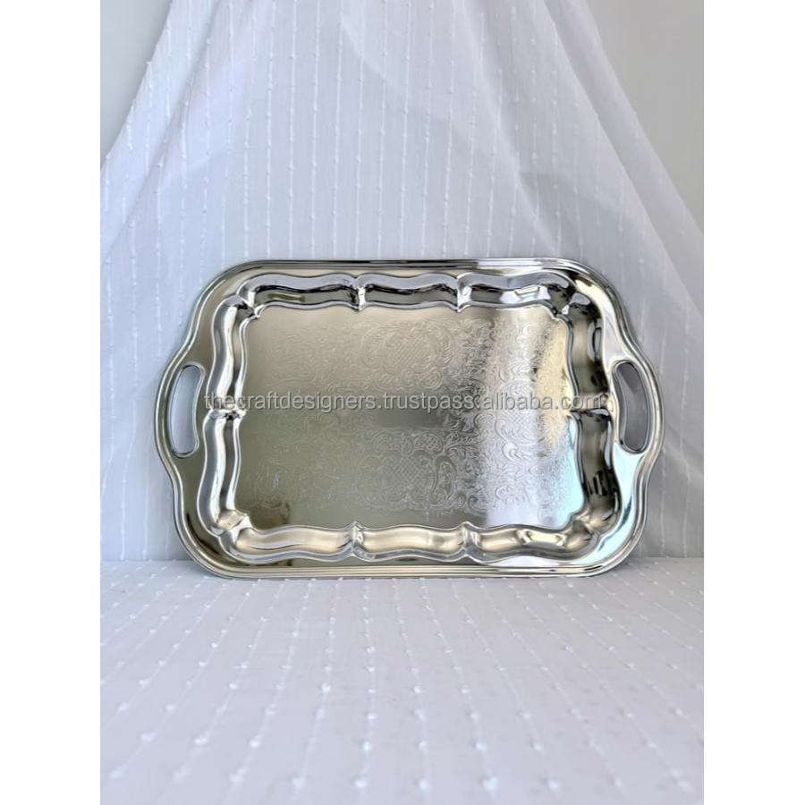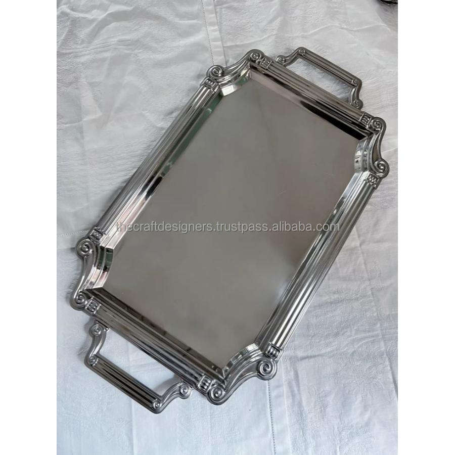 Bandeja de lujo plateada con acabado espejo para servir té, café y aperitivos, bandeja decorativa de gran venta para mesa de comedor.