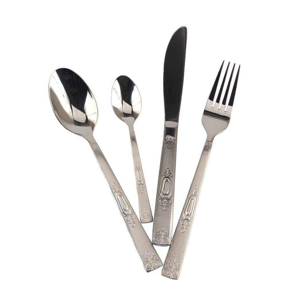 Juego de Cubiertos de acero inoxidable pulido con espejo, vajilla segura para lavavajillas, colección elegante de cubiertos de plata