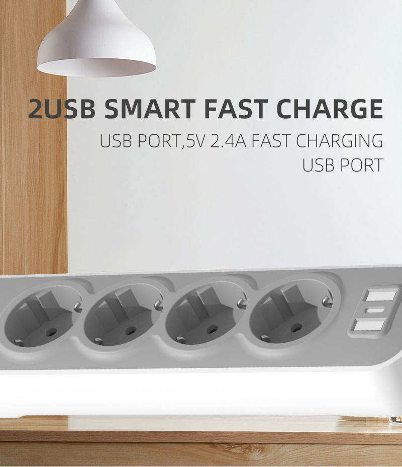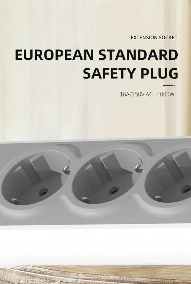 Enchufe múltiple personalizable antipolvo con 3 tomas de corriente y protección antiestática