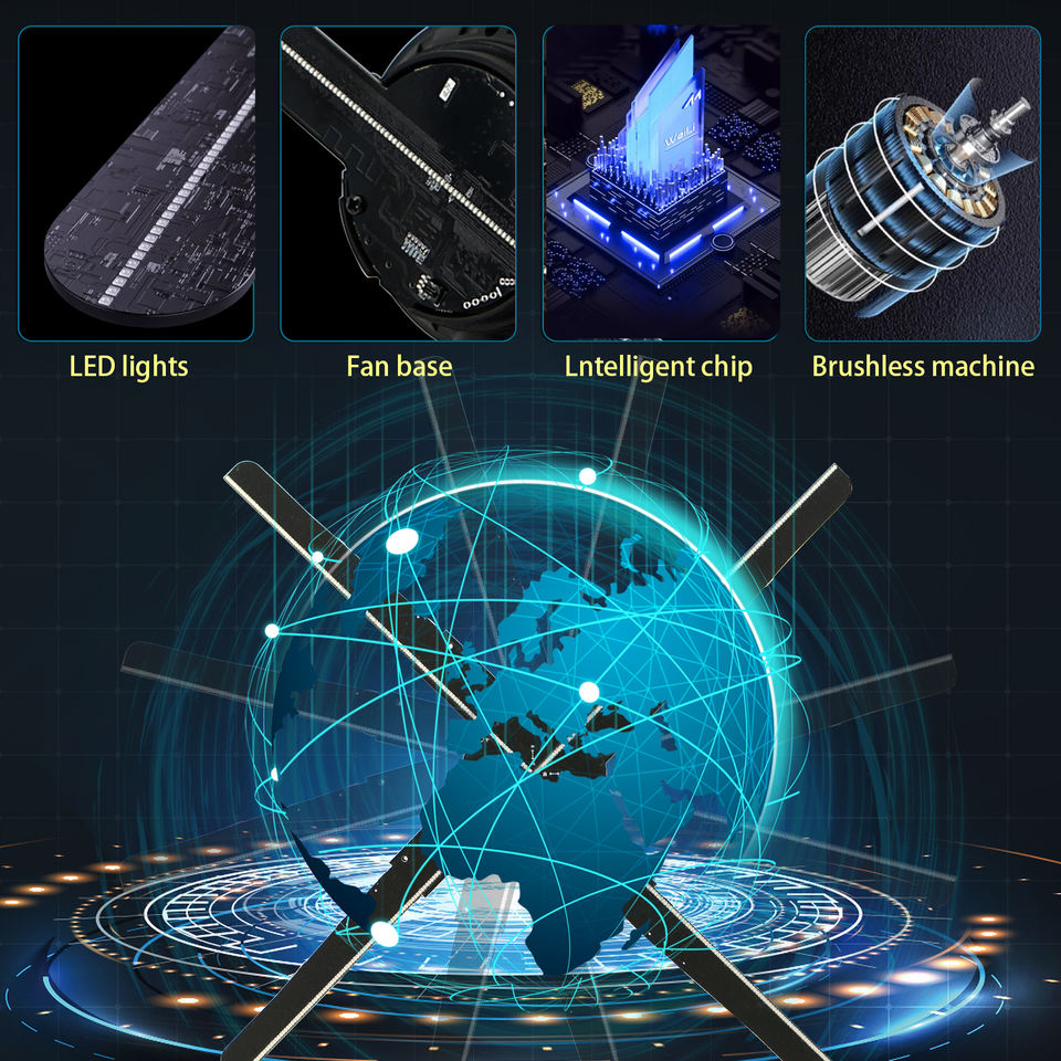 Holograma publicitario 3D de 45 cm con ventilador.Nombre del producto