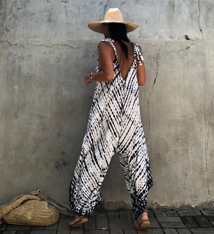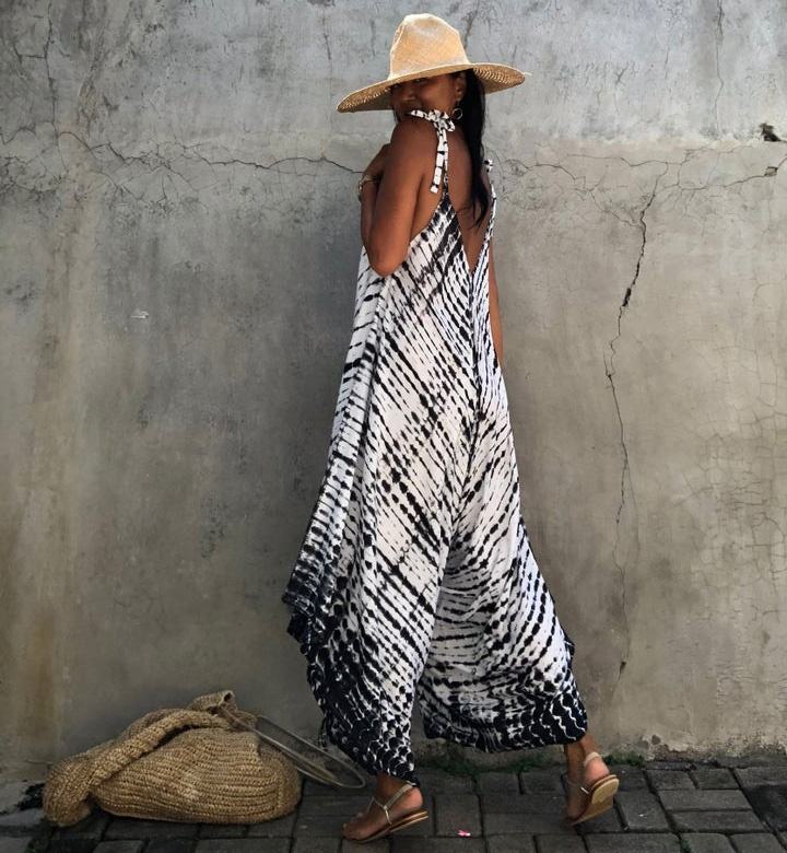 Colores Variados Disponibles en Jumpsuits de Verano de Rayón Ligero con Cuello Redondo y Estampado Tie Dye para Mujer, con Tela Suave y Transpirable