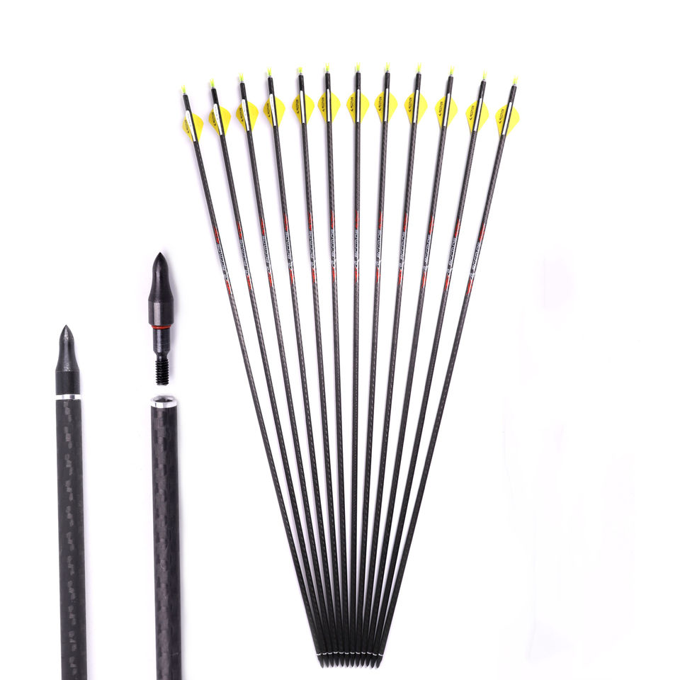 Flechas de Caza de Fibra de Carbono Mixta para Arcos Recurvos y Compuestos, Pluma de Plástico y Punta de Acero con Eje de Fibra de Vidrio para Tiro