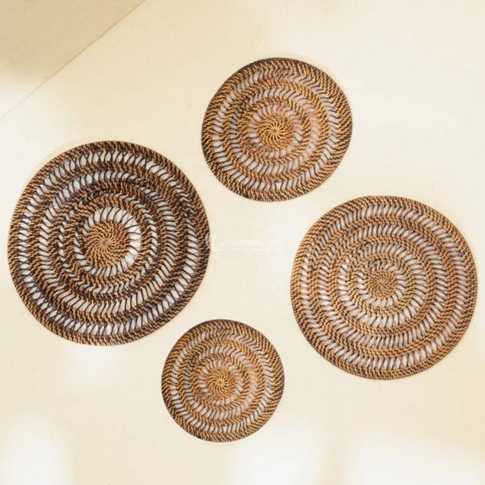 Mantel Individual de Ratán Ecológico de Colores Mezclados, Tapete de Mimbre para Servir, para Mesa de Comedor, Empaquetado en Cartón, Estilo Bohemio