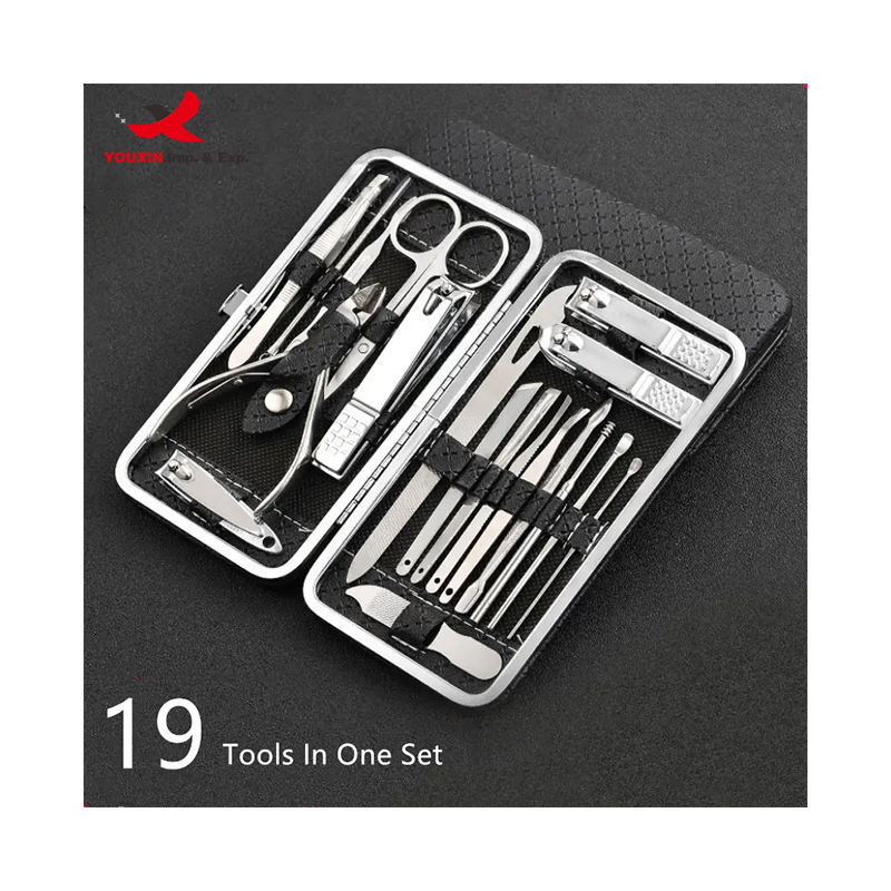 Juego de Manicura Portátil de 19 Piezas y 4 Colores, Precio Bajo de Fábrica, Venta al por Mayor, con Herramientas en Negro y Rojo