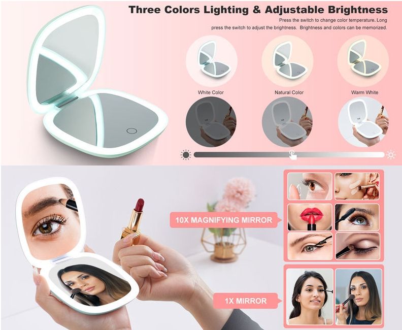 Espejo de Maquillaje de Bolsillo de Bajo Precio para Compras Mixtas, Espejo de Maquillaje Pequeño Plegable de Viaje, Espejo de Bolsillo LED