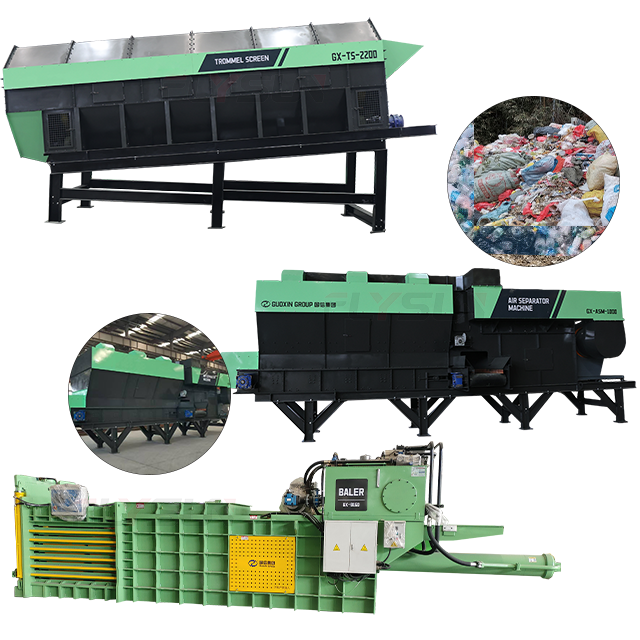 Criba de tambor, Separación de aire, Criba vibratoria, Separador magnético de metales, Trituradora, Máquina empacadora de residuos, Máquina transportadora