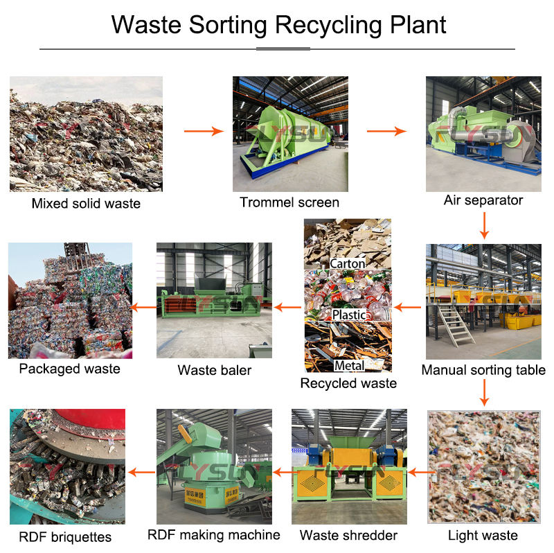 Equipo Completo de Briquetado y Formación de RDF para Clasificación de Residuos Mixtos, Motor, Bomba, Engranajes, Alta Eficiencia, 100-500 Toneladas/día