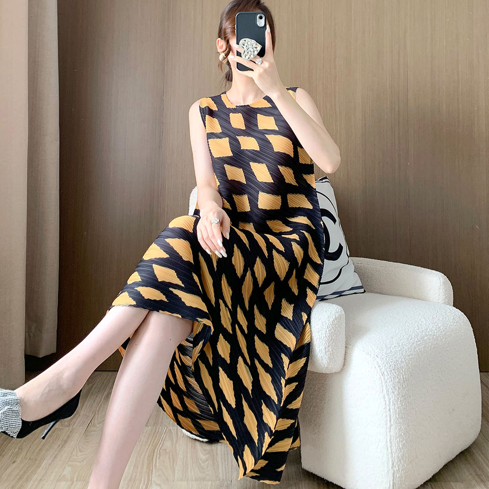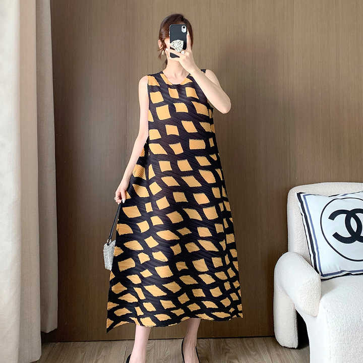 Vestido Midi Miyake Ecológico, Plisado, con Vuelo, Estilo Informal, Asimétrico, Holgado, Talla Grande, Cintura Elástica, 100% Poliéster, Formal