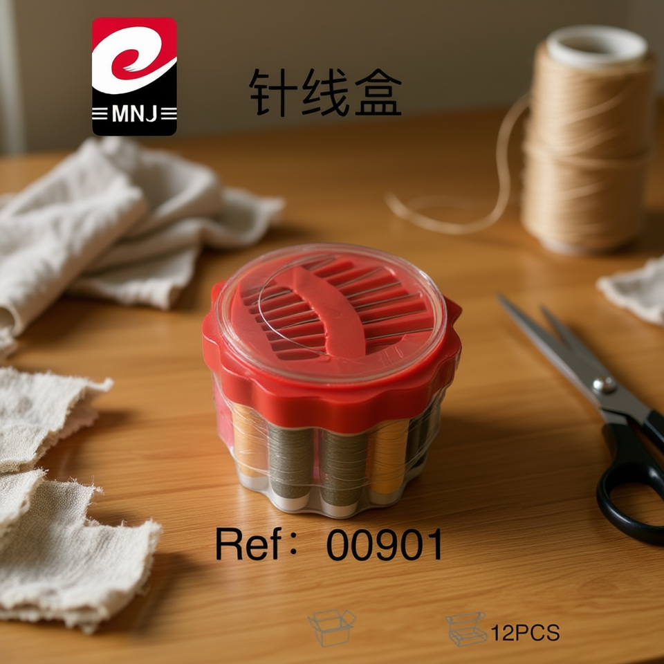 Kit de costura Mnj con agujas e hilos de color rojo, 12 piezas para uso doméstico