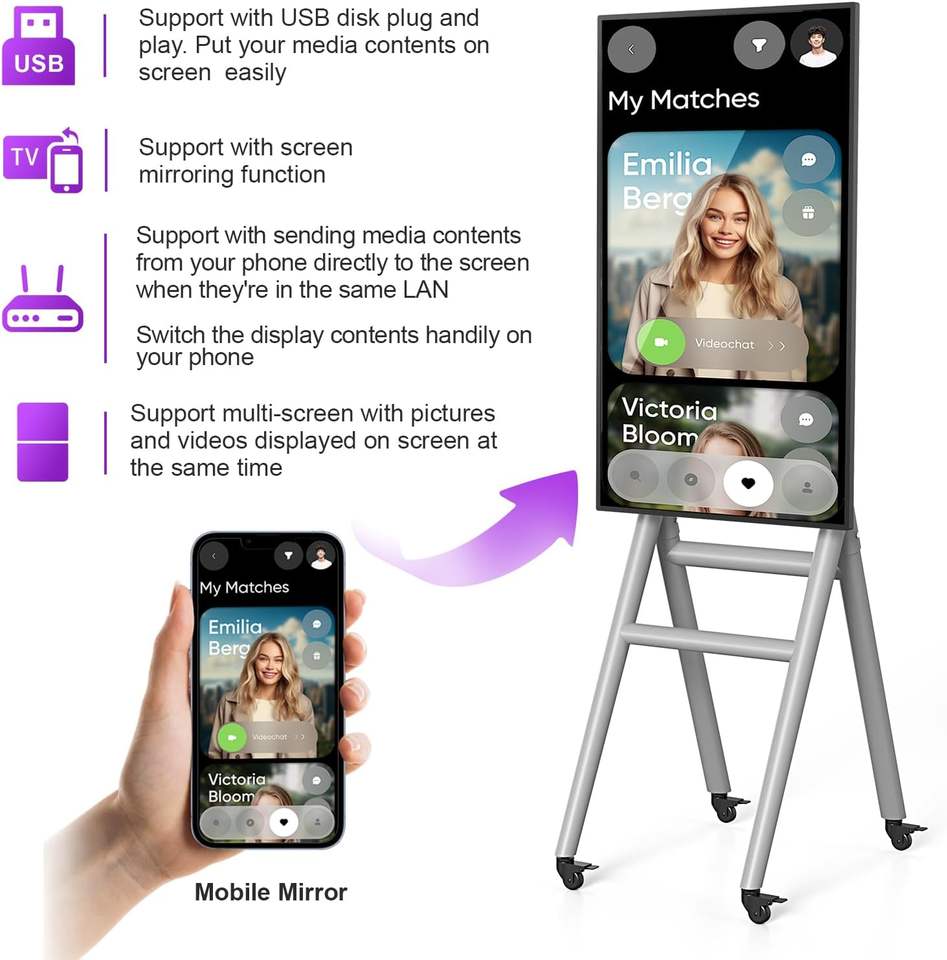 Pantalla Digital Móvil de 43 Pulgadas con Estuche de Transporte, Kiosco Publicitario UHD Portátil para Video, Fotos y Cabina de Fotos