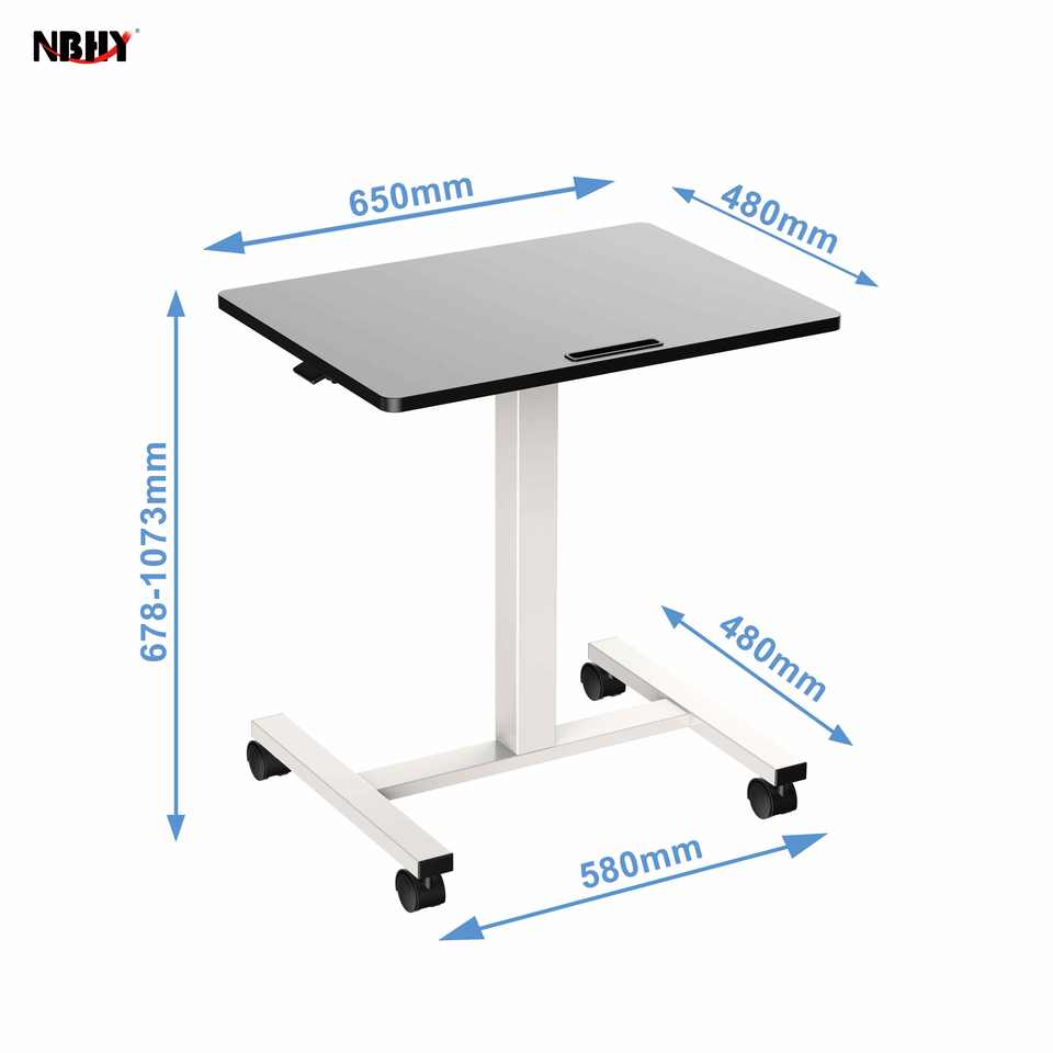 Mesa móvil de altura ajustable Escritorio neumático con ruedas Resorte de gas Mesa de pie de una sola columna