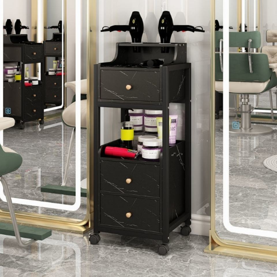 Carrito de Peluquería Móvil de Alta Calidad, Carrito de Herramientas de Belleza Negro para Salón de Belleza
