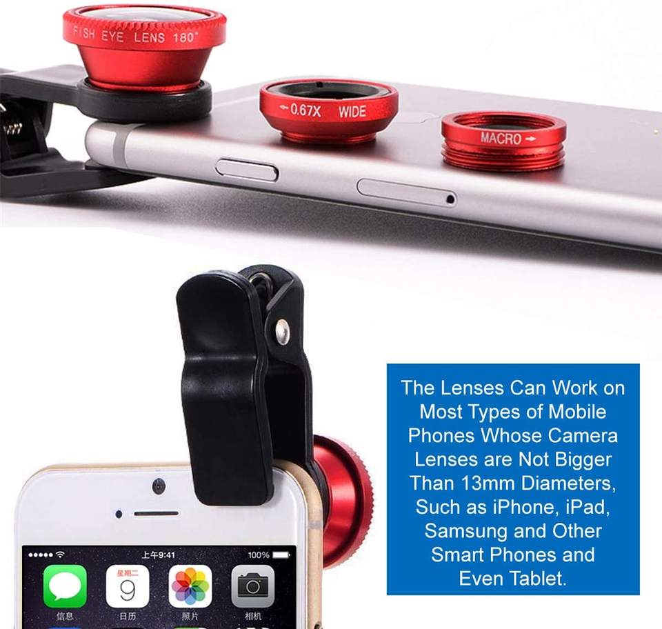 Lente de teléfono móvil 3 en 1, Kit Universal de Clip, lente de cámara de teléfono inteligente, gran angular, Macro ojo de pez para Smartphone