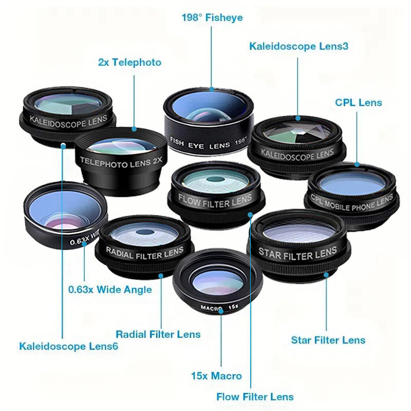 Mobile Phone Lens Kit 5in1 Interchangeable Lenses Macro Wide Fish Eye For Smartphone Photography Accessories