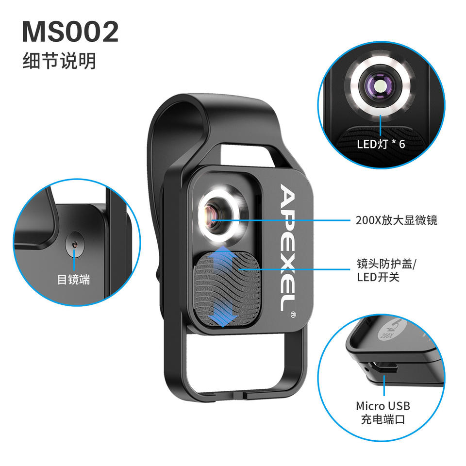 Mobile Phone Microscope 200X Magnification For Gemstone Identification And Biology Experiments Plastic Geometric Shape