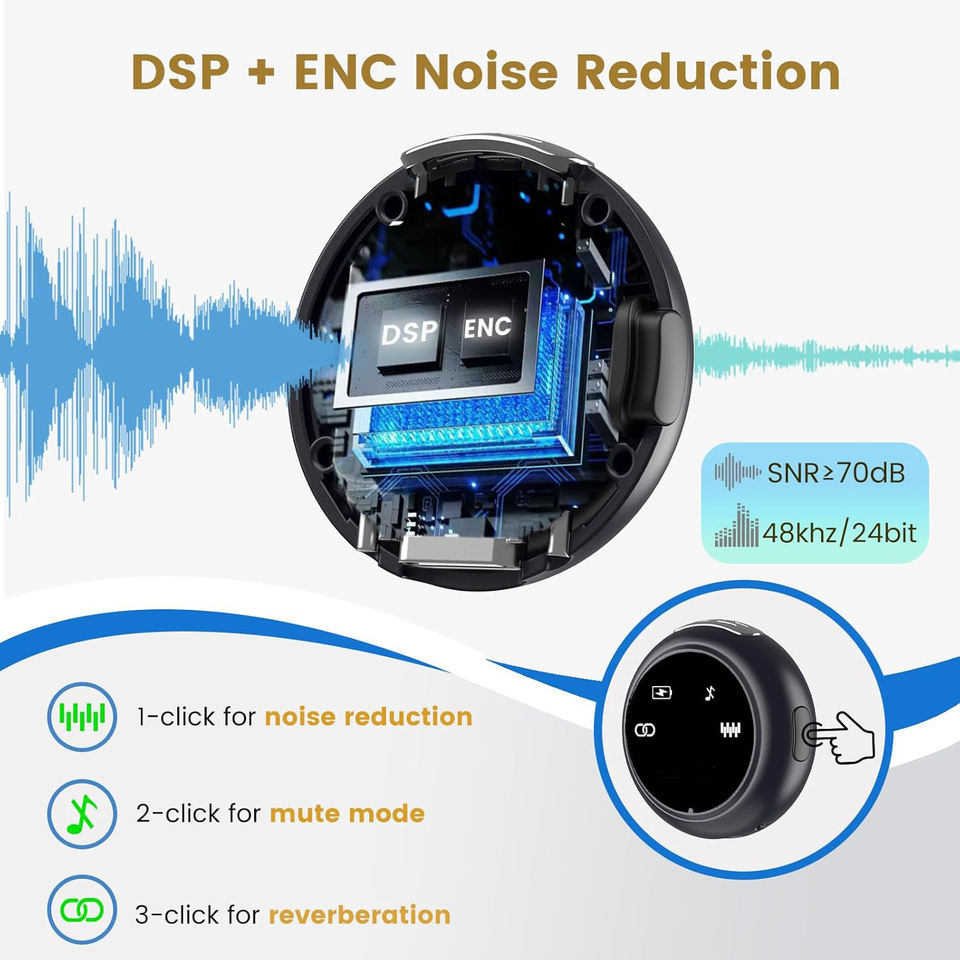 Función:Cancelación de ruido, Con luces LED, Portátil, Luz peso, Micrófono de condensador, 2in1 Interview Lavalier Microphone