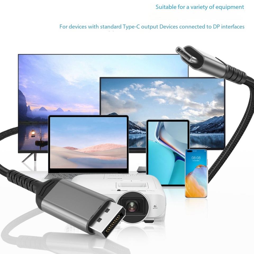 Móvil para mostrar 4K 60Hz Tipo-C a DP 1,2 Cable Compatible con Thunderbolt 3 Monitores Cable convertidor de video