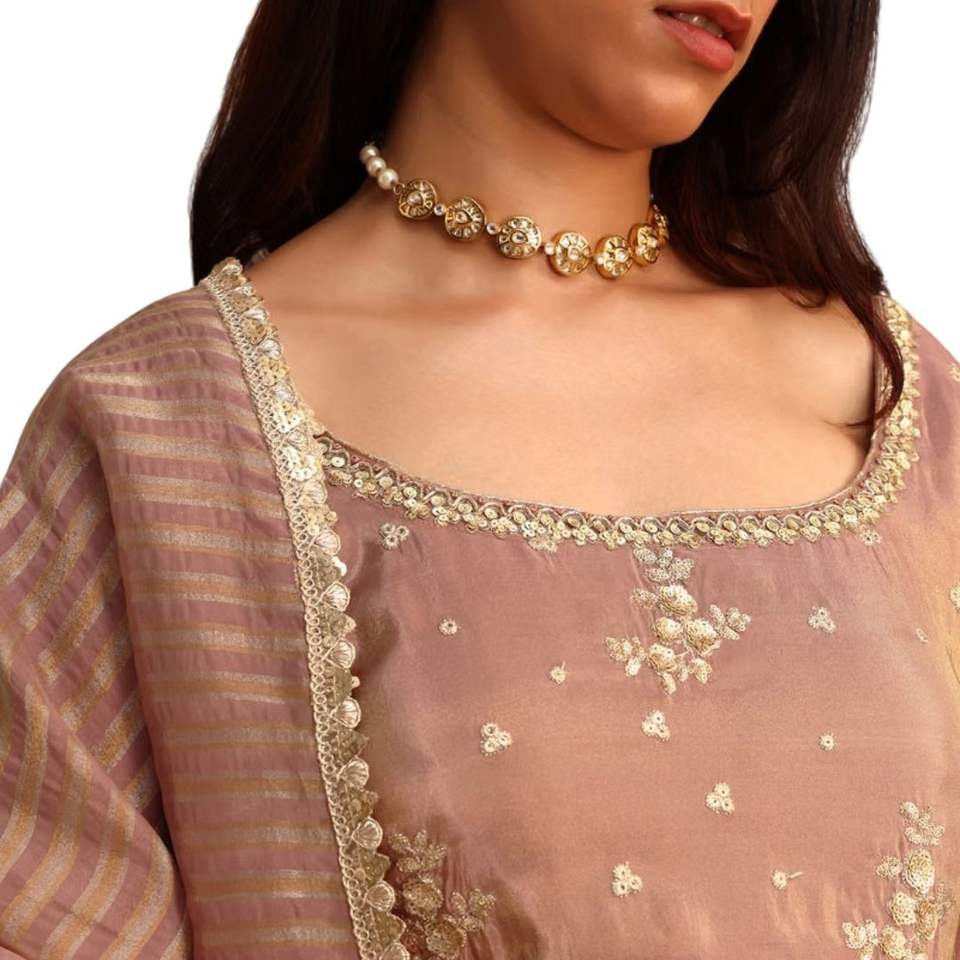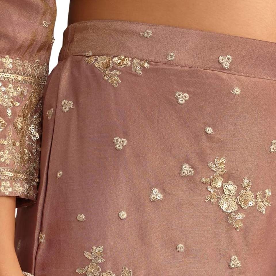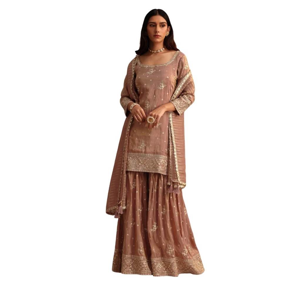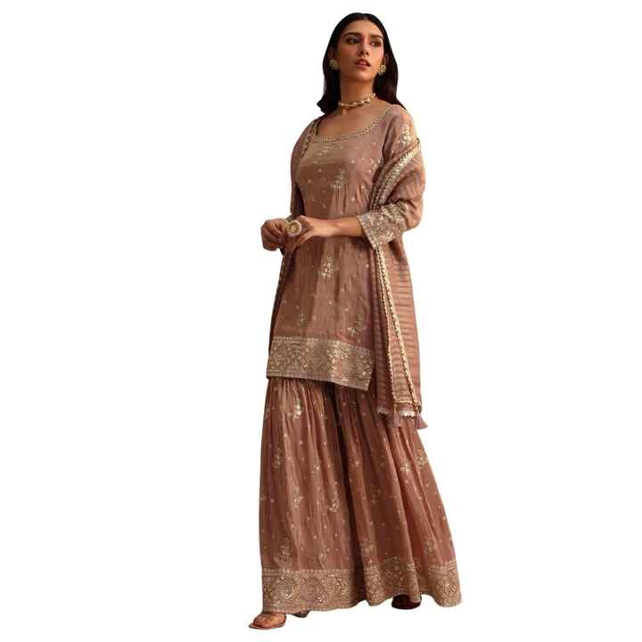 Conjunto de lentejuelas Mocha Mousse Kurti Sharara con Chanderi Banarasi Dupatta Premium étnico para mujer traje de fiesta festiva