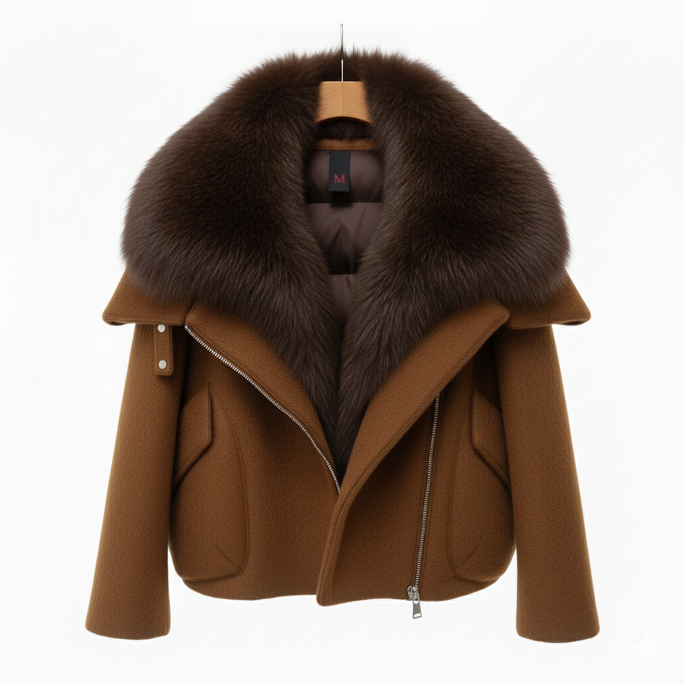 Chaqueta de Lana de Ganso Reversible de Moda para Mujer Mocha, con Cuello de Pelo y Borlas, Cortavientos, Impermeable, Transpirable y de Secado Rápido