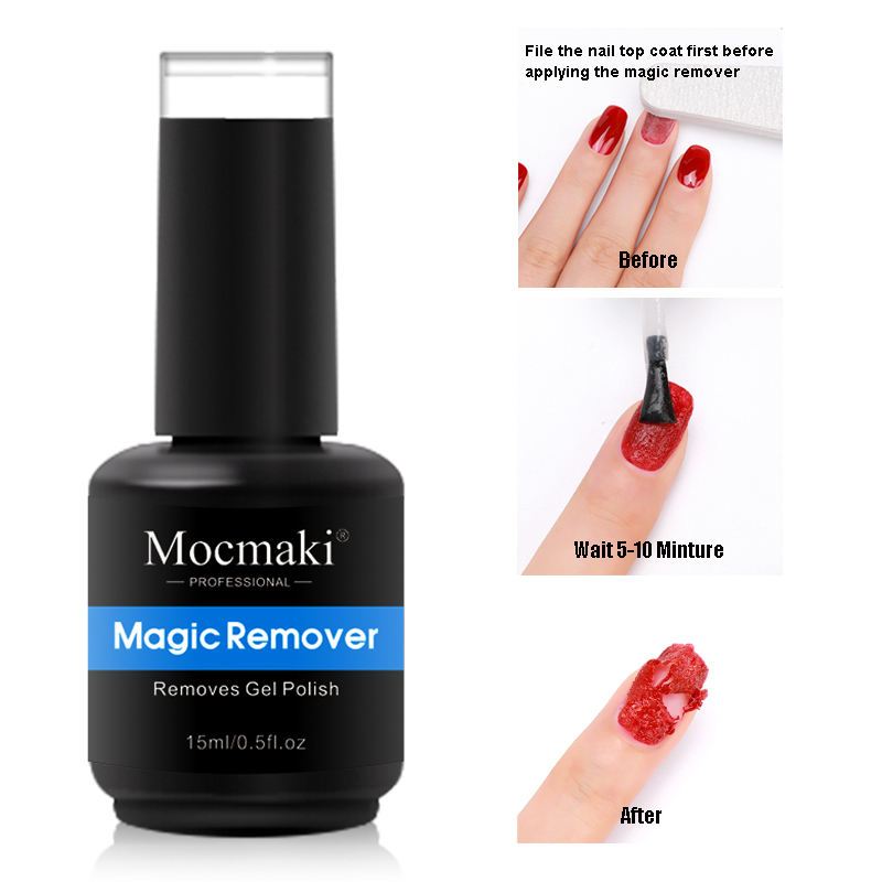 Mocmaki Etiqueta Privada logotipo personalizado 15ml eliminación rápida UV Gel esmalte de uñas sin daños Ráfaga rápida removedor de esmalte de Gel de uñas mágico
