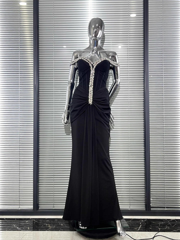 Vestido Largo de Verano para Mujer, Estilo Casual, para Fiesta, Graduación, Noche, con Hombros Descubiertos, Negro, con Vendaje