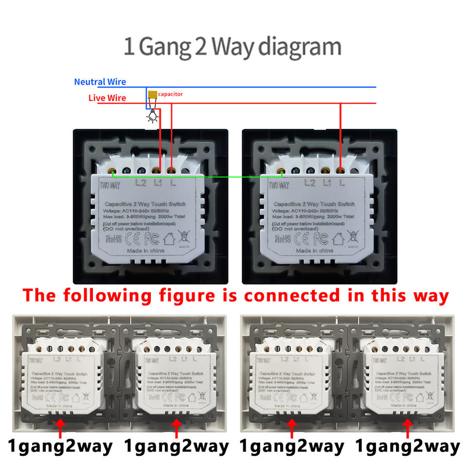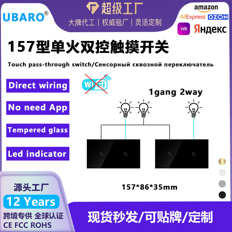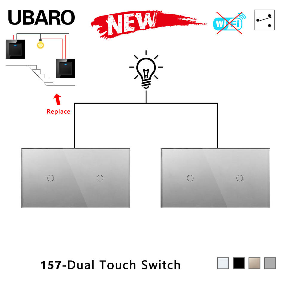 Interruptor Táctil de Doble Control Estándar Europeo Modelo 157, Panel de Vidrio Templado, Negro Blanco Puro, Control Doble Unidireccional