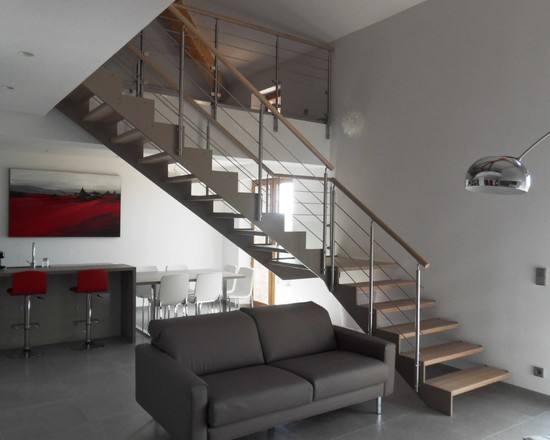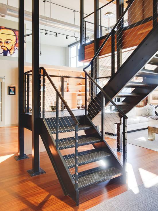 Escaleras en Forma de U con Barandilla de Varillas para Segundo Piso