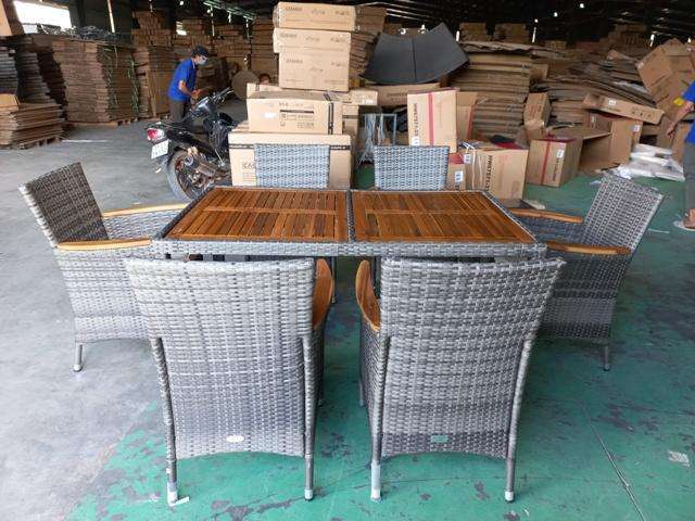 Moderno 1 + 6 Juego de comedor Muebles de mimbre con detalles en madera No apilables para uso en exteriores Duradero y elegante