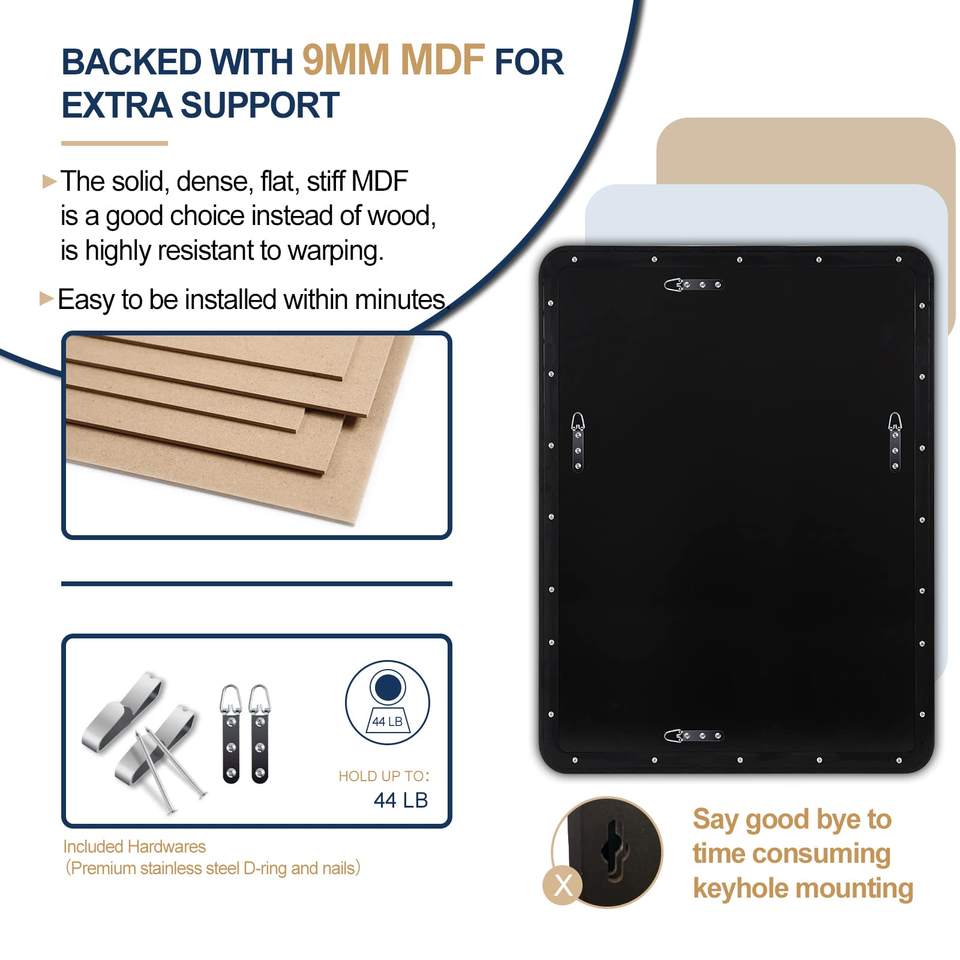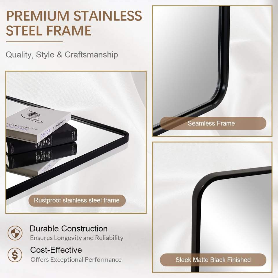 Moderno 1 ''Marco de tubo oblongo profundo Espejo de tocador de baño Montado en la pared SUS304 Latón cepillado 1'' Iluminación Horizontal/Vertical