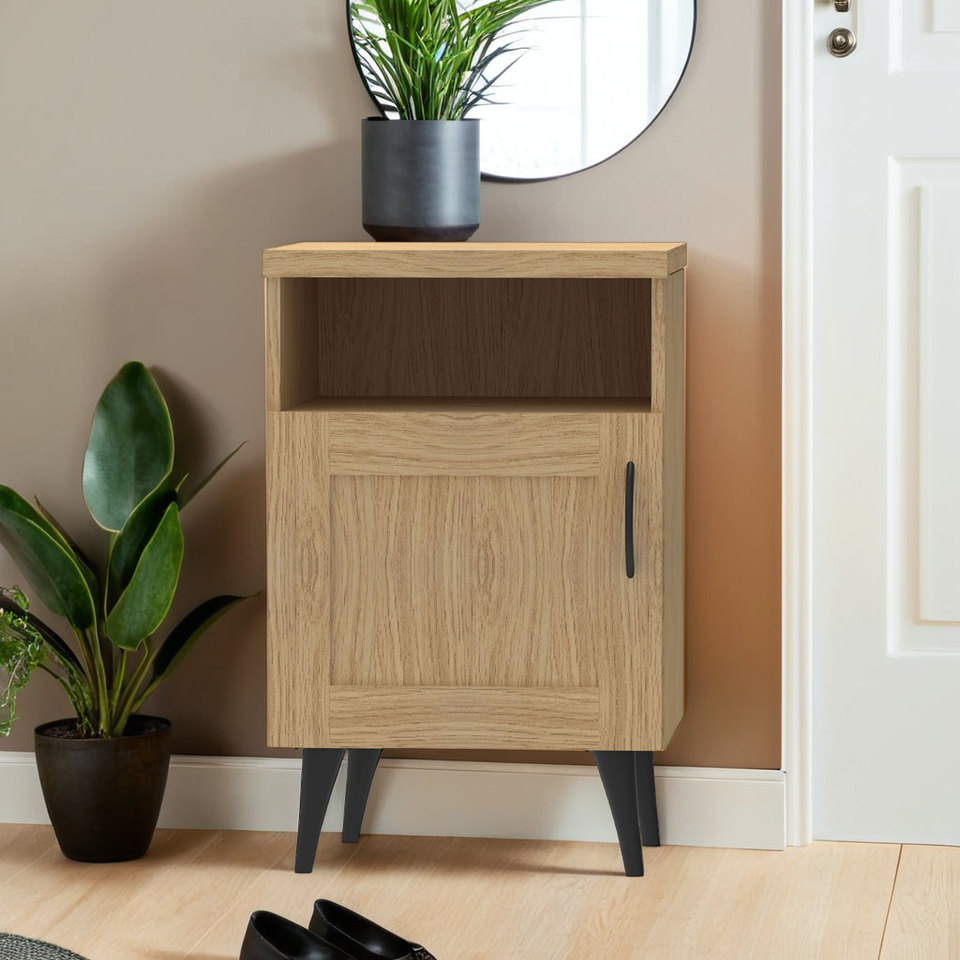 Mesita de noche moderna de 1 puerta, mesita de noche compacta, mesa auxiliar de almacenamiento para dormitorio o sala de estar OEM