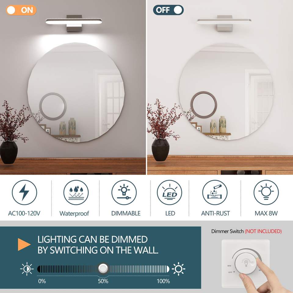Moderna Barra de Luz LED para Baño de 16 Pulgadas, Regulable, Lámpara de Pared para Baño, 8W, Iluminación LED para Baño