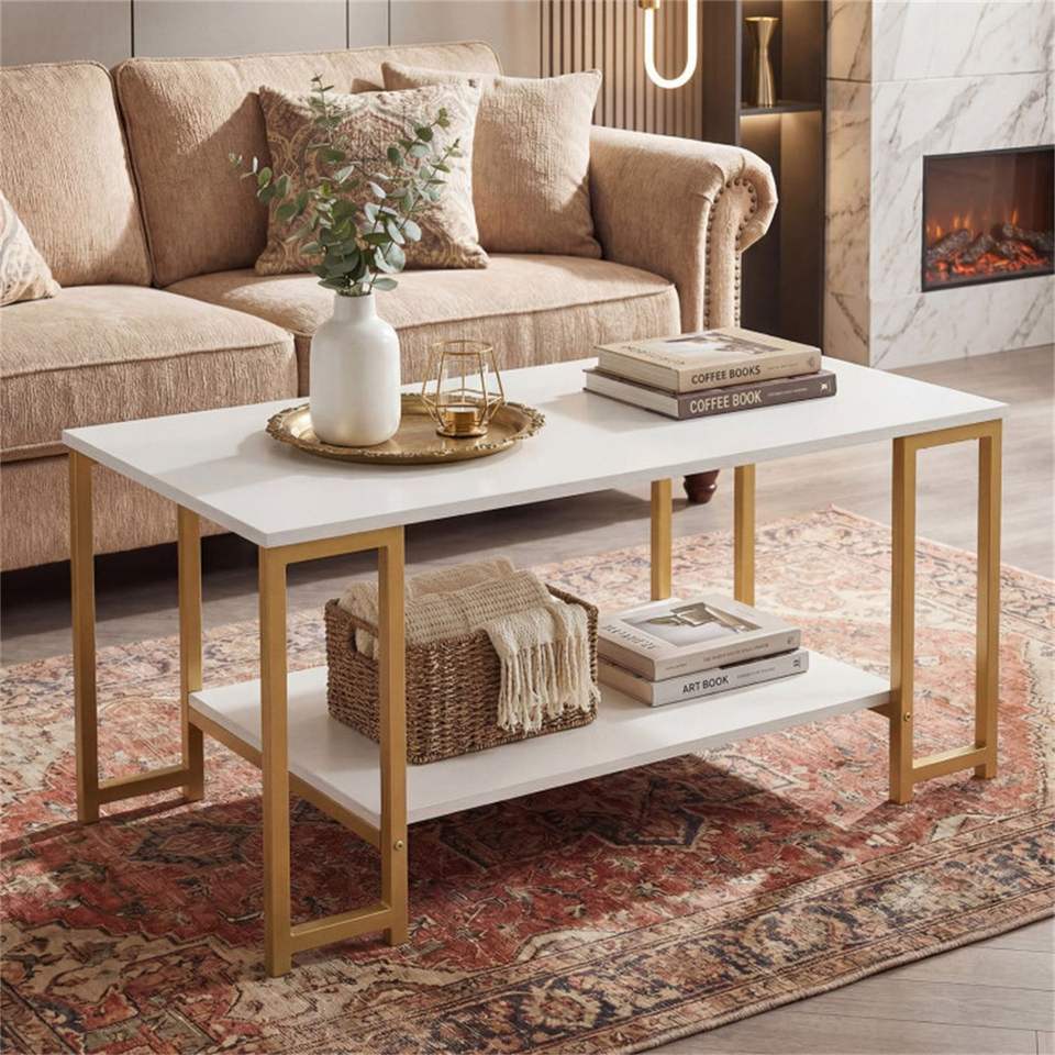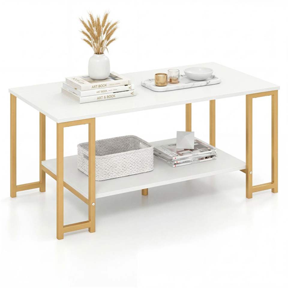 Mesa de Centro Moderna de 2 Niveles con Almacenamiento Abierto, Compatible con Robots Aspiradores, Mueble para Sala de Estar