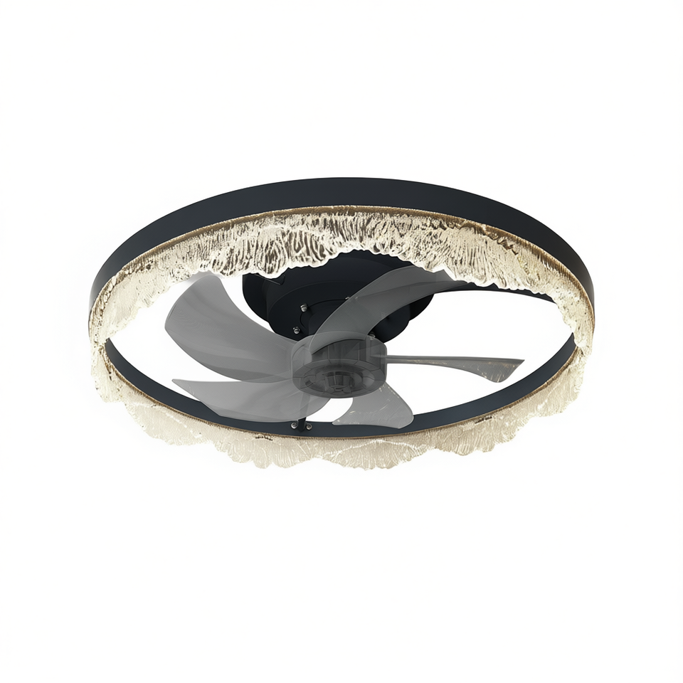 Ventilador de Techo LED Moderno de 20 Pulgadas con Luz, Negro, Montaje Empotrado, Anillo Acrílico, Control Remoto, Regulable, para Hogares
