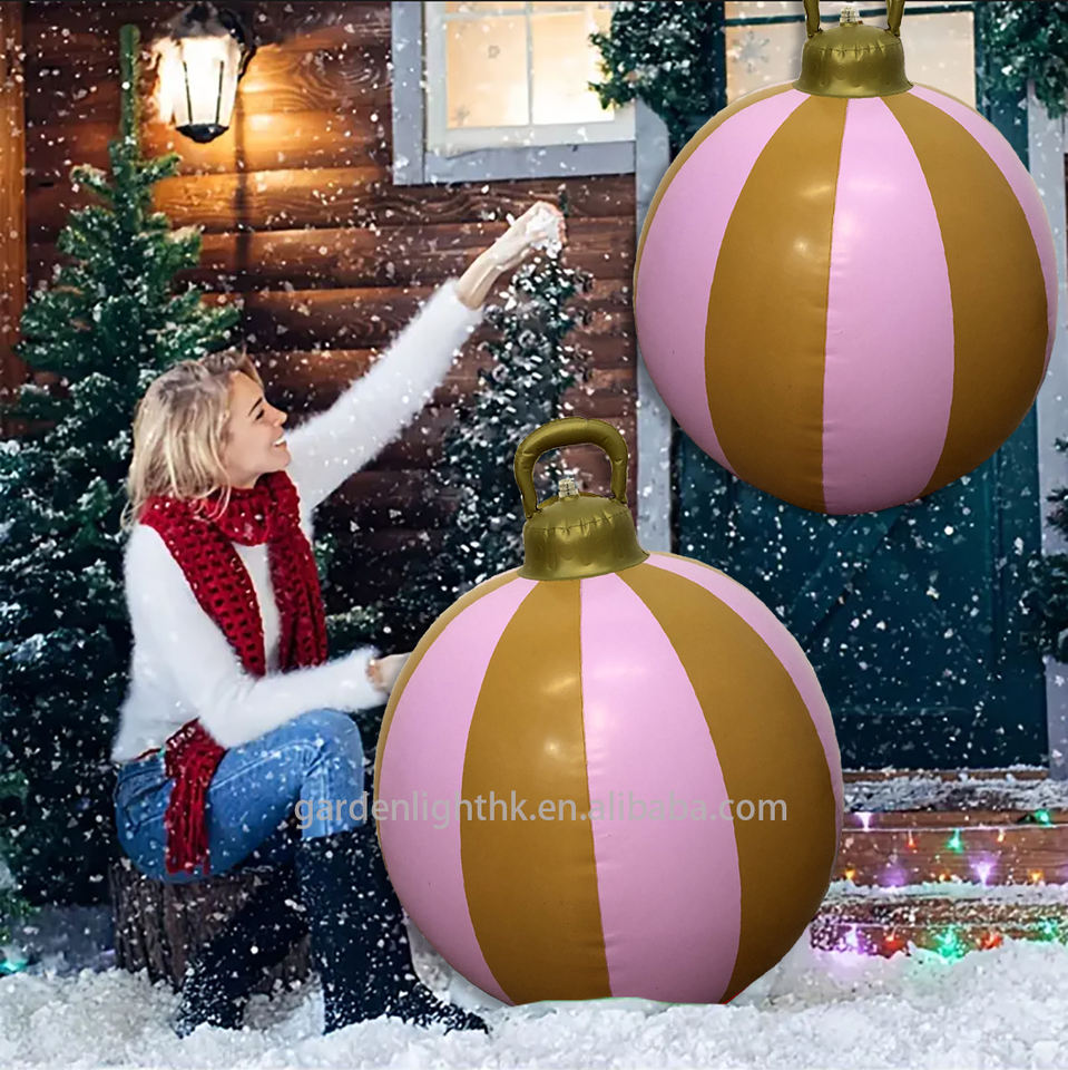 Bola de Navidad inflable de PVC con rayas modernas de 23,6 pulgadas, decoración colgante para el hogar, Hotel, patio, fiesta de vacaciones