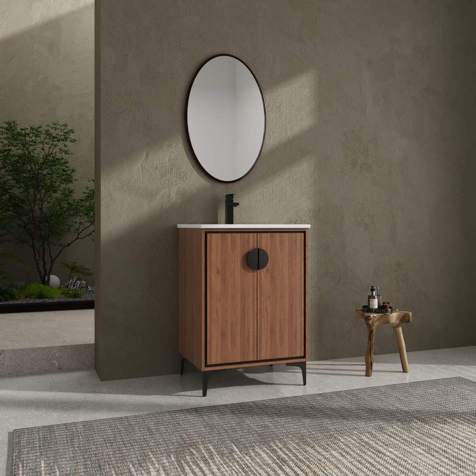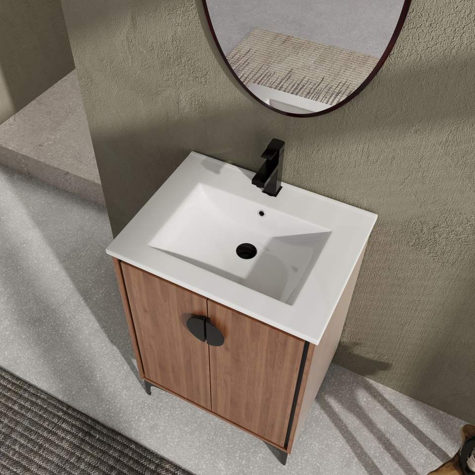 Mueble de Baño Moderno de 24 Pulgadas con Lavabo Superior, 2 Puertas con Cierre Suave, Mueble de Almacenamiento con Lavabo Individual