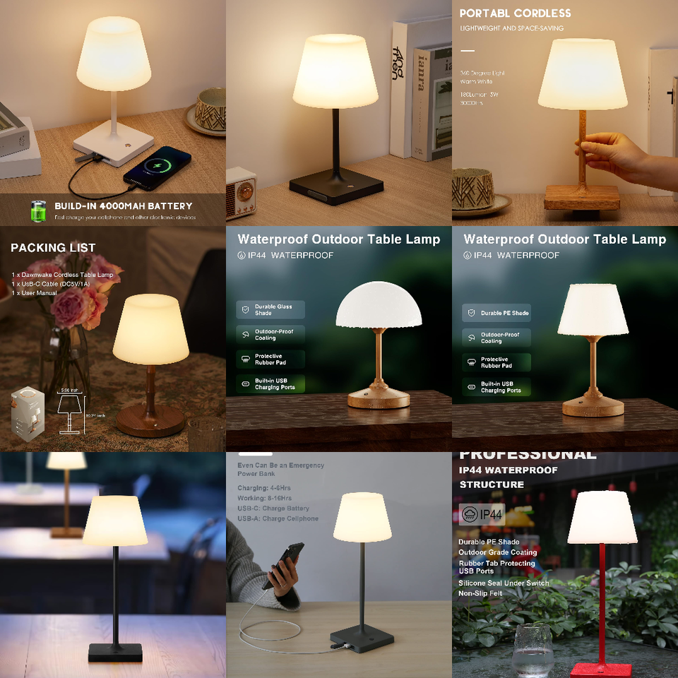 Moderna lámpara de mesa LED recargable de 3 colores, portátil, inalámbrica, impermeable, seta, luz de escritorio con tacto para uso en exteriores