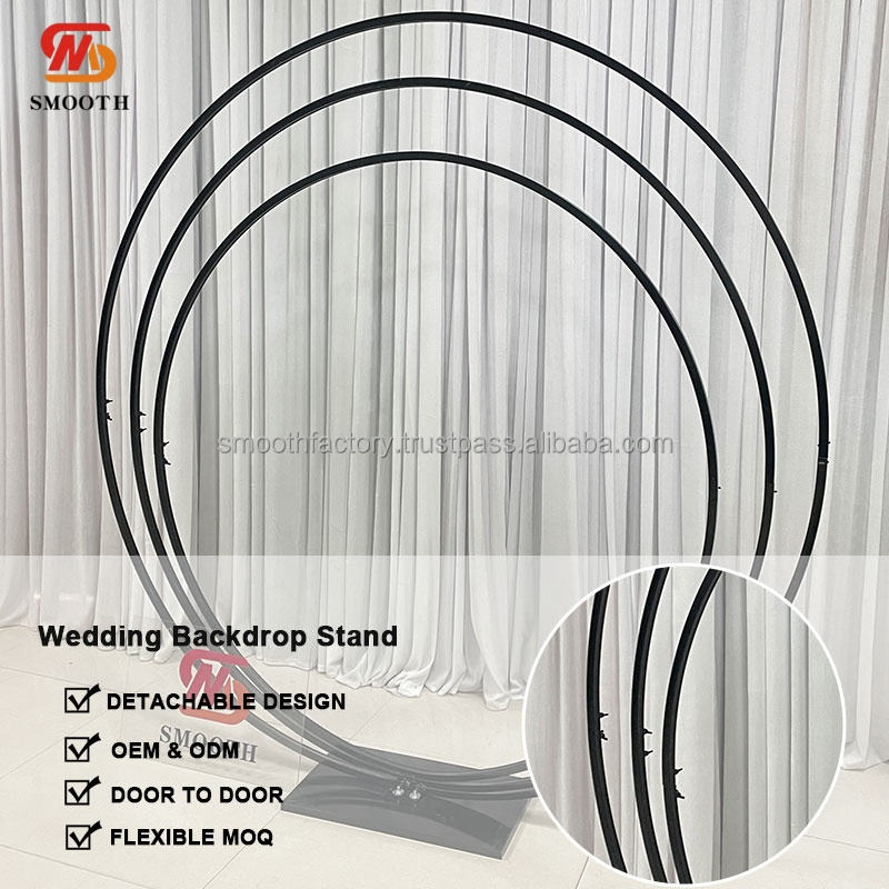 Marco moderno de 3 círculos concéntricos, soporte de anillo negro desmontable, arco suave y elegante, telón de fondo para eventos de boda, recién llegado