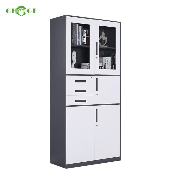 Moderna librería de 3 puertas, archivador de tarjetas de índice ajustable, venta al por mayor, Luoyang, diseño de borde estrecho, Panel de Metal, estilo de acero