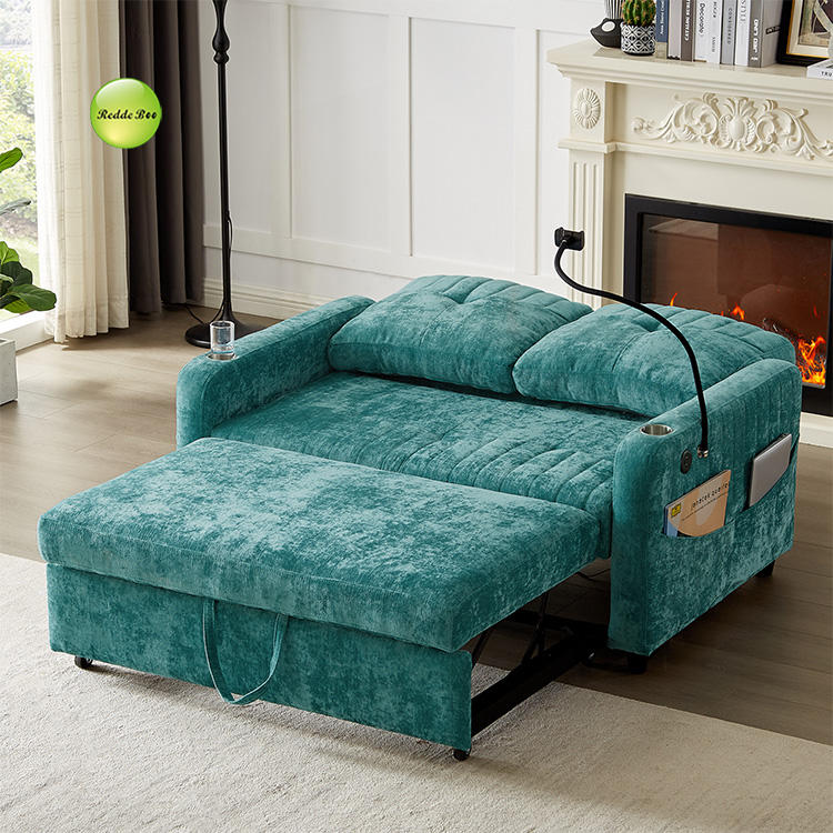 Sofá cama extraíble 3 en 1 moderno para muebles de sala de estar, sofá de 2 plazas, sofá cama para dormir con soporte para teléfono, carga 18042B