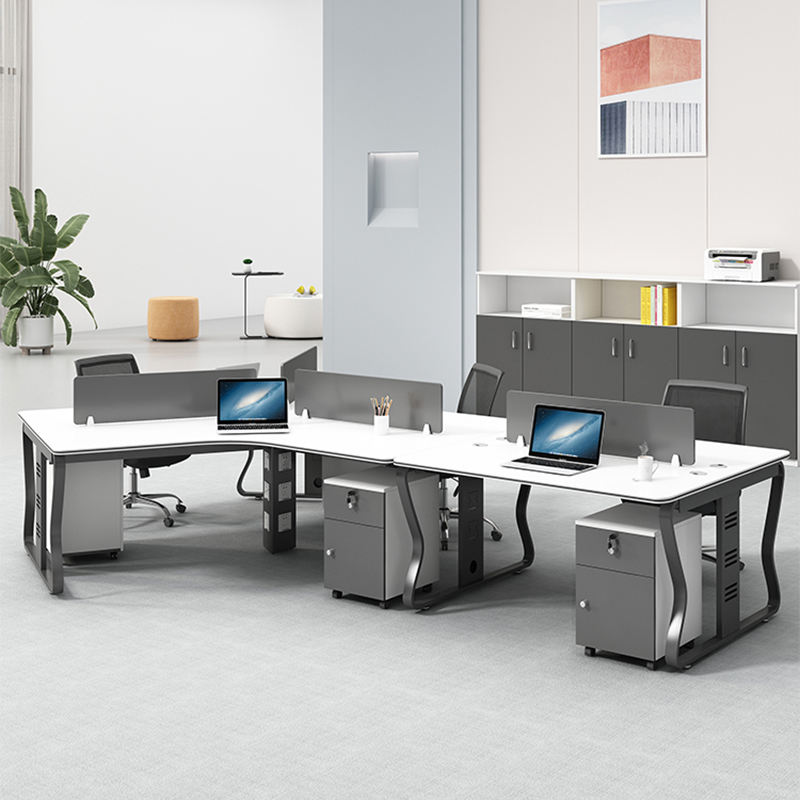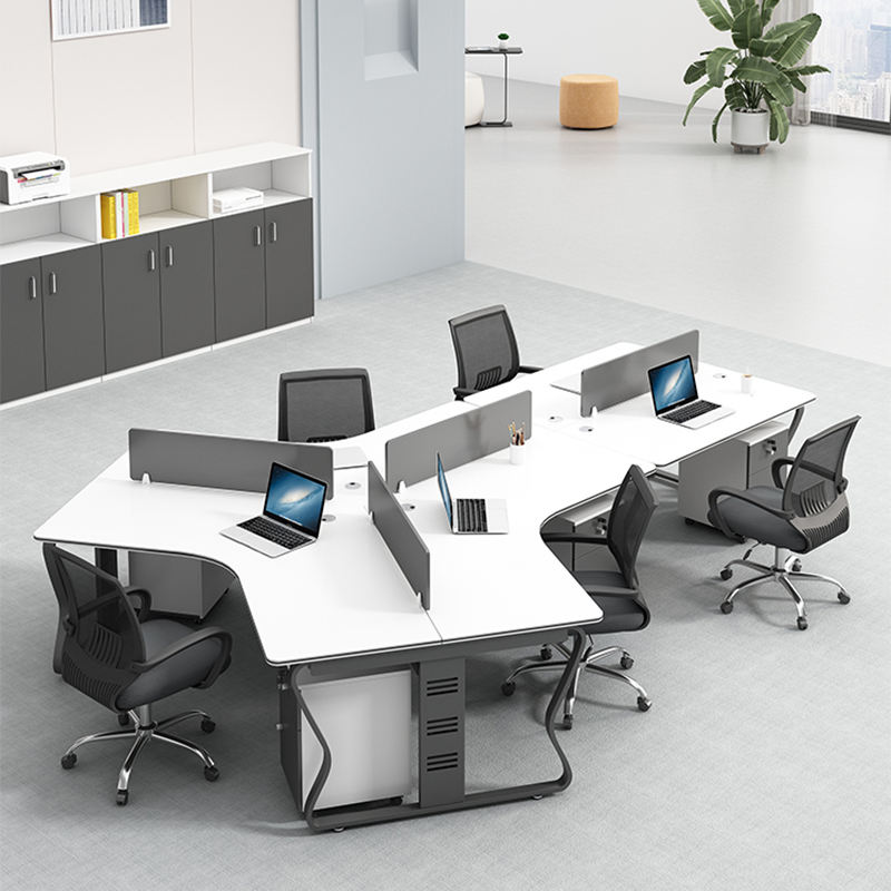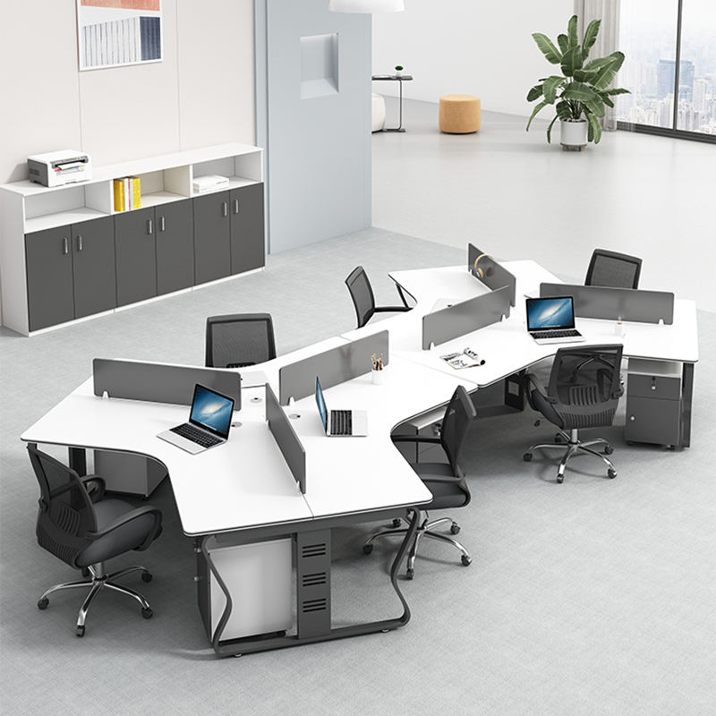 Escritorio de oficina modular en forma de Y moderno para 3 personas, estación de trabajo de madera duradera para oficinas comerciales, Panel de estilo de madera a la venta