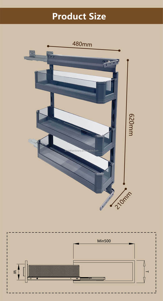Moderno Estante Organizador de Vidrio de 3 Niveles Multifuncional para Armarios de Cocina Estrechos, Cesta Extraíble Lateral Expandible para Especias