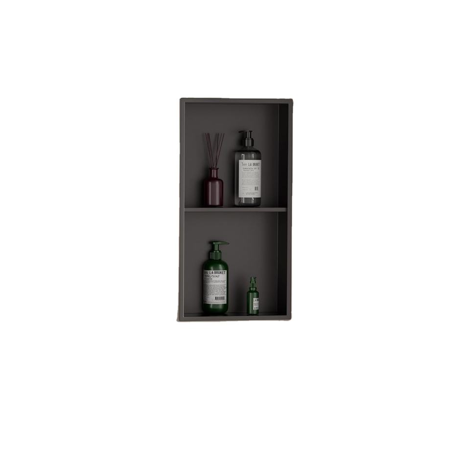 Nicho de ducha de doble estante de acero inoxidable 304 moderno, nicho de baño montado en la esquina LED negro