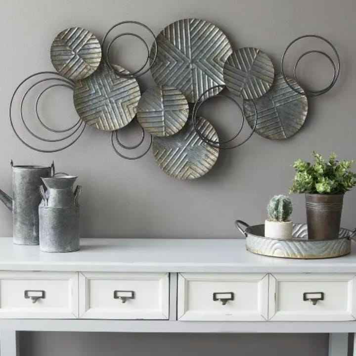 Moderna Decoración de Pared de Metal con Diseño de Disco Ondulado 3D, Collage de Círculos de Hierro con Acabado Texturizado en Blanco, Dorado y Bronce para Decoración de Lujo
