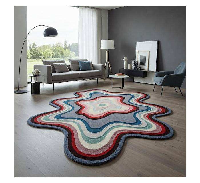 Alfombra Moderna con Diseño 3D de Ondas, Forma de Amoeba Orgánica, Alfombra de Lana Hecha a Mano de Estilo Retro y Lujoso con Capas de Color