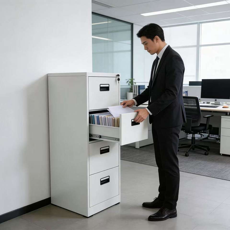 Archivador vertical moderno de acero con 4 cajones y cerradura, mueble de oficina flexible de gran capacidad