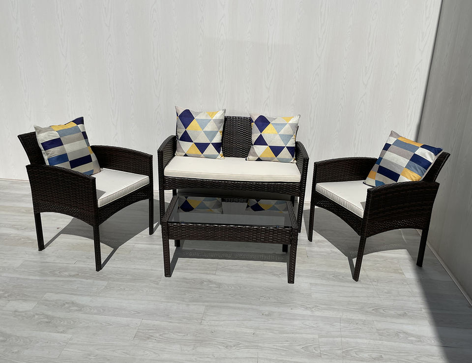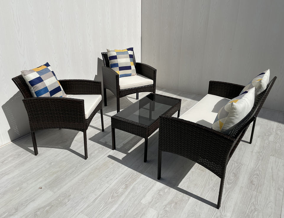 De ratán, de acero, de vidrio templado, cojín de poliésterMaterial