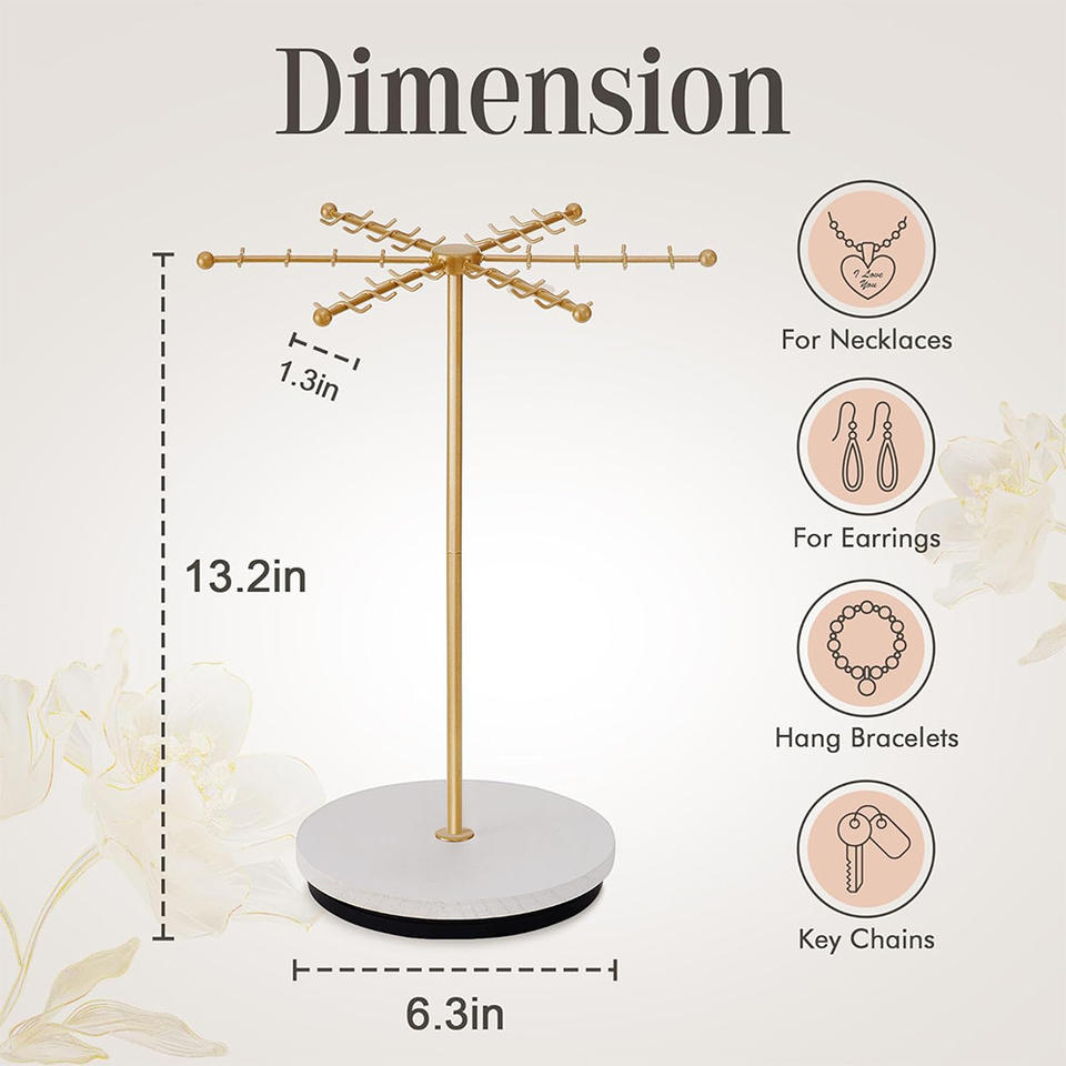 Moderno 48 ganchos acabado en oro soporte para collar de hierro estante de joyería giratorio de madera con llave pulsera organizador de pendientes