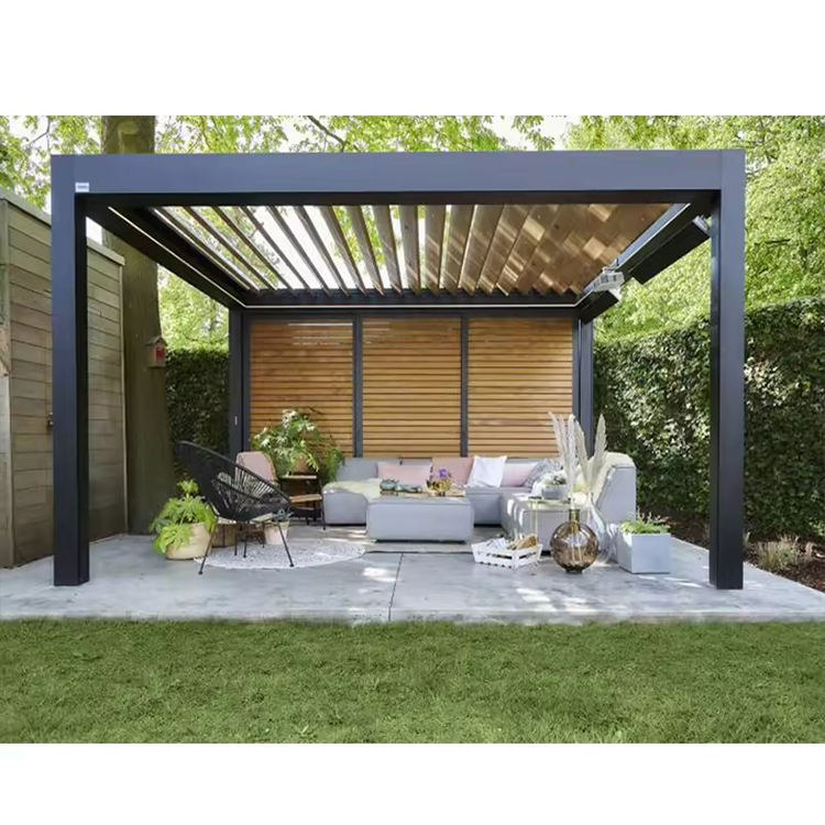 Moderno 4x4 Aluminio Bioclimatica Gazebo Louvre Inteligente Automática Persiana Techo Exterior Impermeable Sombrilla Patio Piscina Pérgola