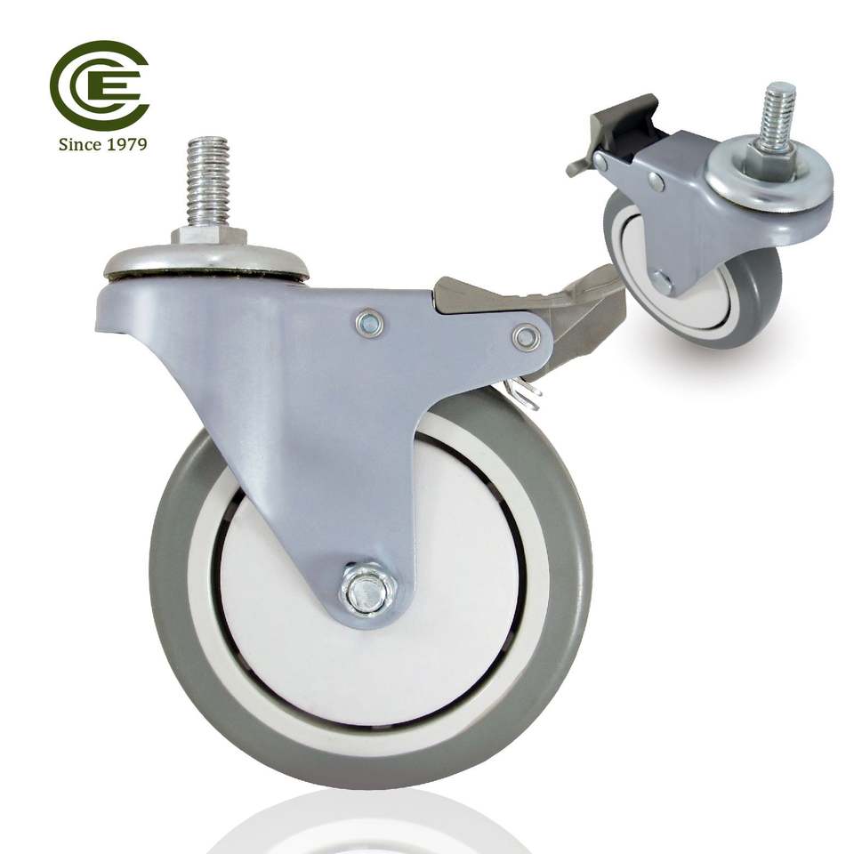 Ruedas de carro de servicio pesado modernas de 5 pulgadas, rueda de bloqueo con vástago de rosca de rueda TPR para uso industrial en el baño de la escuela al aire libre